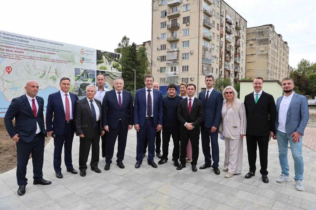 «С 2011 года Сухум является городом-побратимом Нижнего Новгорода. В прошлом году глава Нижнего Новгорода Юрий Шалабаев и мэр Сухума Беслан Эшба актуализировали соглашение о развитии побратимских связей, а в феврале этого года определили план сотрудничества, включающий более 60 совместных мероприятий и проектов. В августе этого года в рамках празднования Дня основания Нижнего Новгорода было подписано соглашение о сотрудничестве между городской Думой Нижнего Новгорода и Сухумским городским Собранием. Кроме того, установлено побратимство между Арзамасом и Новым Афоном, а также Бором и Пицундой. Отдельно отмечу побратимство между нашими районами: Кстовским муниципальным округом и Гудаутским районом, Городецким муниципальным округом и Гагрским районом», — добавил Глеб Никитин.