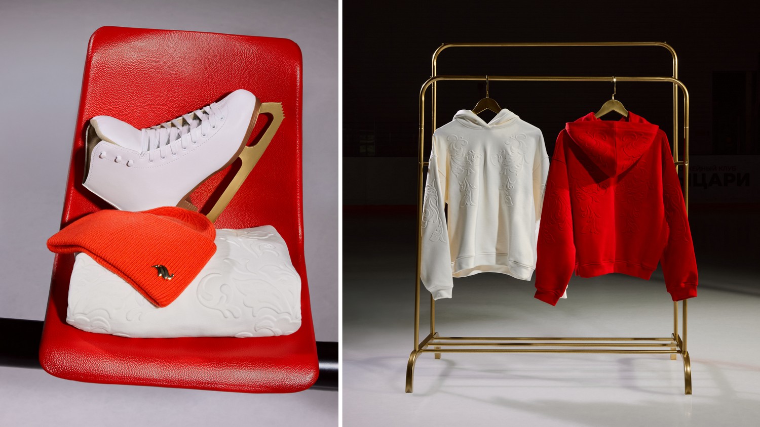 В рамках партнёрства бренд «Хохлома» подготовил для фигуристов специальную коллекцию экипировки в традиционных цветах промысла, знакомых всем: черном, красном, золотом, а также белом - он дополняет палитру, ассоциируется с зимним видом спорта, белым льдом.