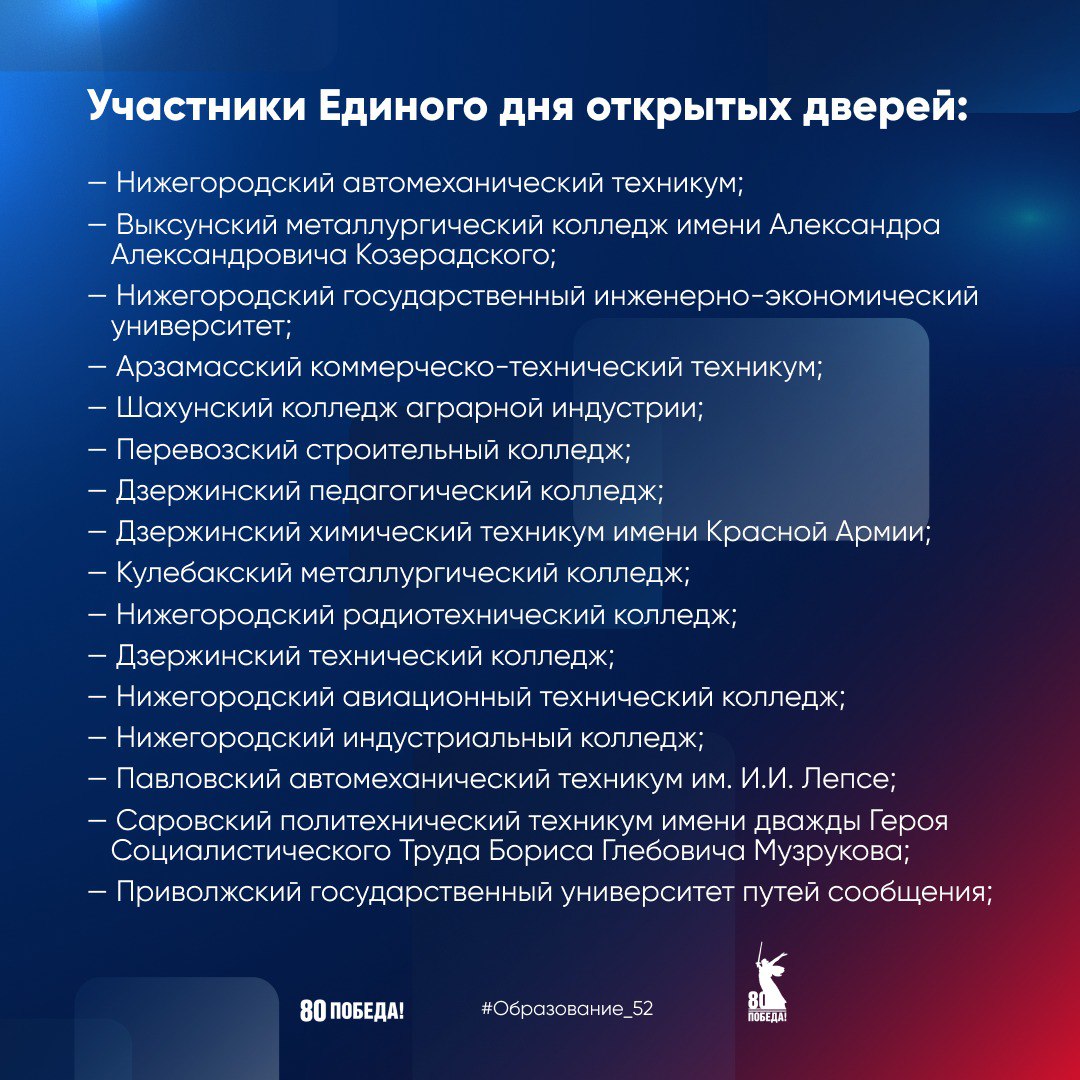 Нижегородские колледжи и техникумы-участники проекта «Профессионалитет» приглашают на Единый день открытых дверей