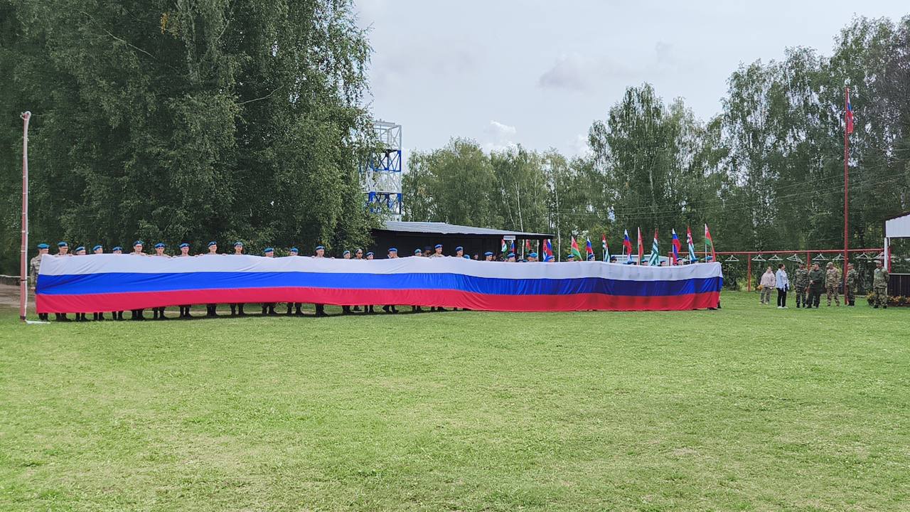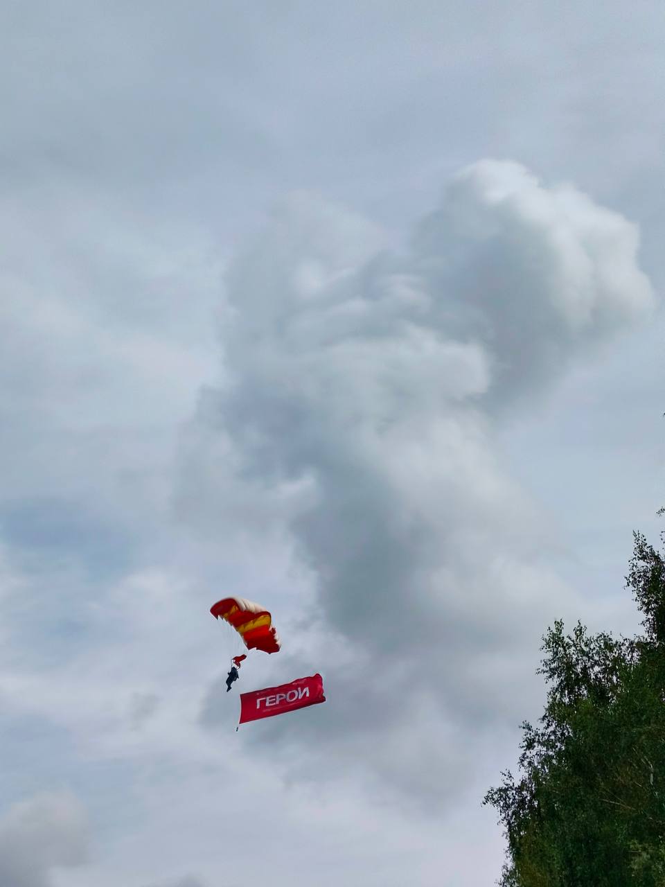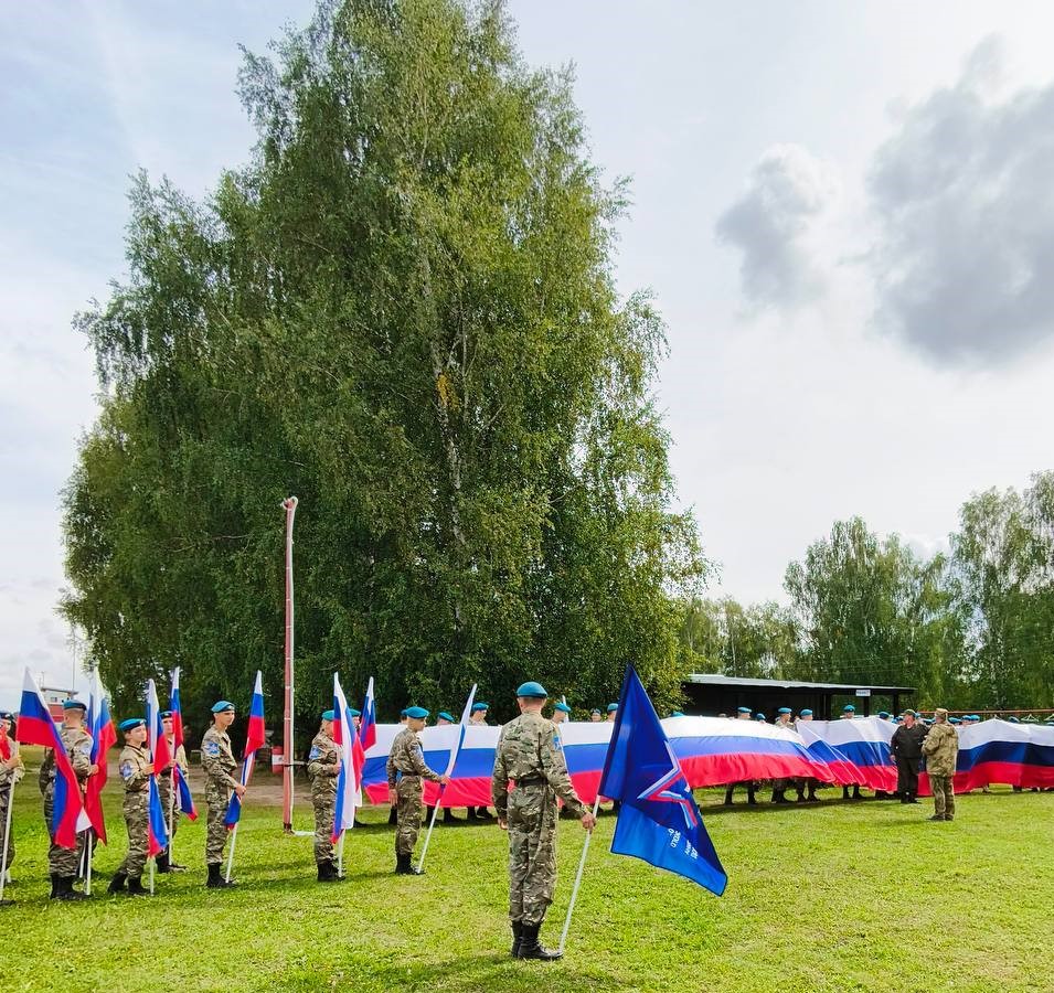 Сегодня утром участники международной смены военно-патриотического лагеря «Хочу стать десантником» из Нижнего Новгорода, Луганска, городов Белоруссии и Абхазии развернули большой триколор на земле, а 100 юных десантников совершили прыжок с парашютом - флаг нашей страны парил в этот день в небе на высоте почти 1000 метров.