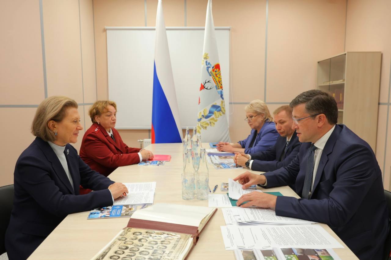 В ходе визита в Нижегородскую область главы Роспотребнадзора также состоялась рабочая встреча Анны Поповой и Глеба Никитина. Руководители обсудили меры по дальнейшему повышению санитарно-эпидемиологической безопасности в регионе.