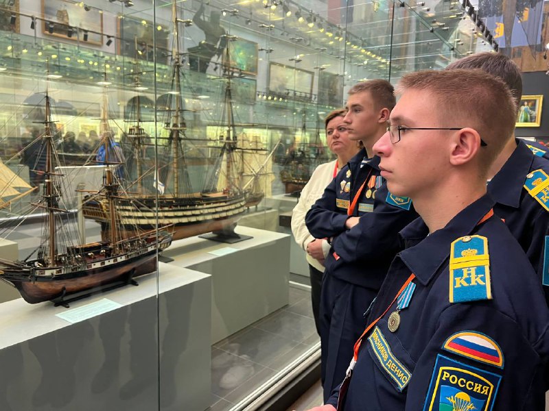 «Здесь множество подлинных уникальных экспонатов – ботик Петра Первого, флаги, украшения носовой части корабля, модели старинных кораблей – отражена вся история военно-морского флота. А ещё здесь есть полотна Айвазовского с видами сражений. Я целый день мог бы здесь ходить!» – рассказал курсант Нижегородского кадетского корпуса ПФО им. генерала армии Маргелова В.Ф. Александр Умрихин.